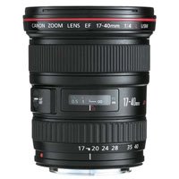 Broaden your perspective with the Canon EF 17-40mm ultra-wide-angle zoom lens. Ideal for both film and digital SLR cameras, the lens offers three aspherical lens elements in addition to a Super UD (ultra-low dispersion) glass element, creating superior optics in all conditions. In addition, the lens focuses as close as 11 inches (0.28mm), and offers both Canon's full-time manual focus and a powerful ring-type ultra-sonic monitor (USM) that produces fast and silent autofocus. Other features include a constant f/4 maximum aperture, the choice of screw-in 77mm filters or a holder in the rear of the lens for up to three gel filters, and optical coatings optimized for use with digital cameras. Boasting weather-resistant construction similar to other high-end L-series cameras, the lens carries a one-year warranty.- Focal length: 17-40mm